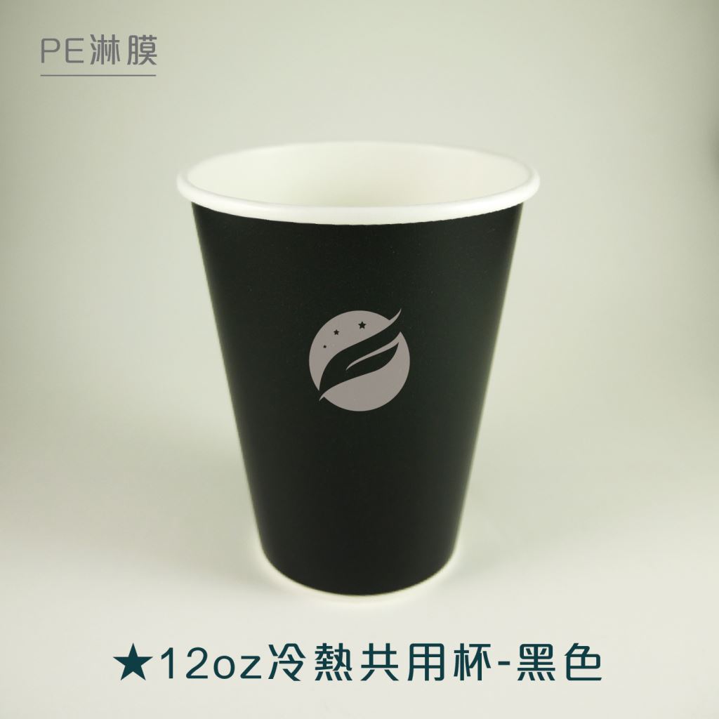 【12oz冷熱共用杯-黑色】90口徑 360ml 雙面pe淋膜 50個*20條/箱