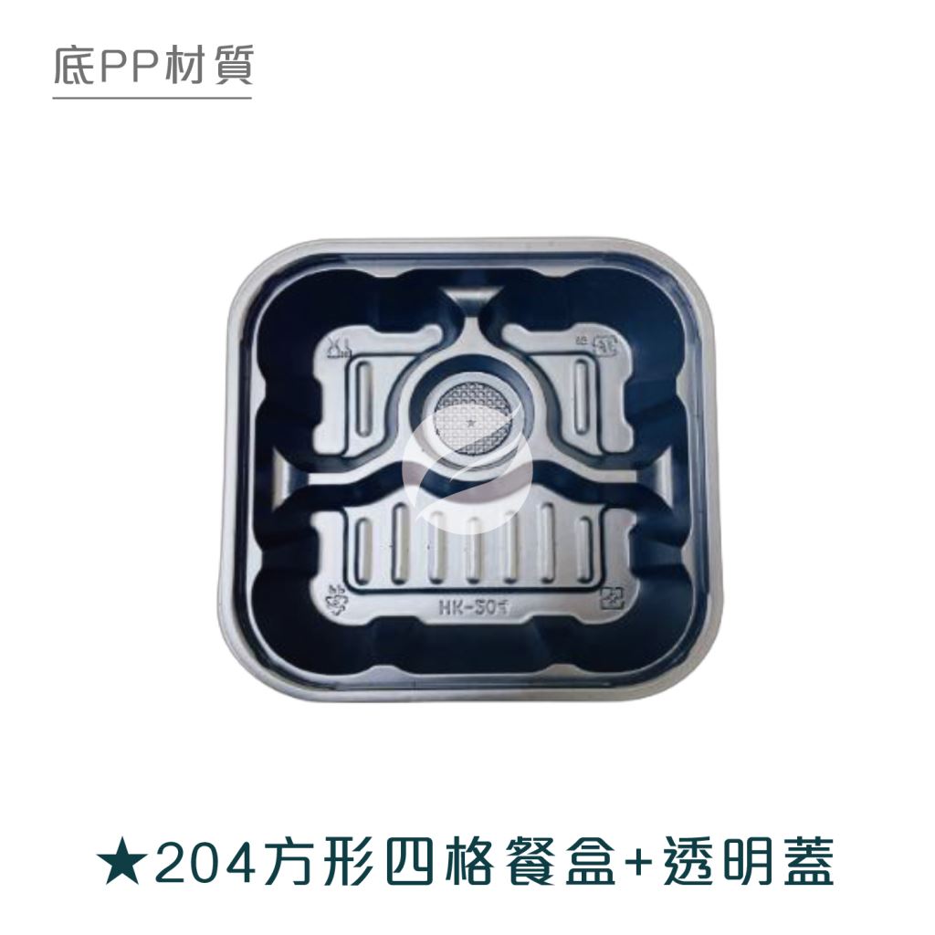 【204方形四格餐盒+透明蓋】HK204 PP黑色底盒 OPS透明蓋 300組