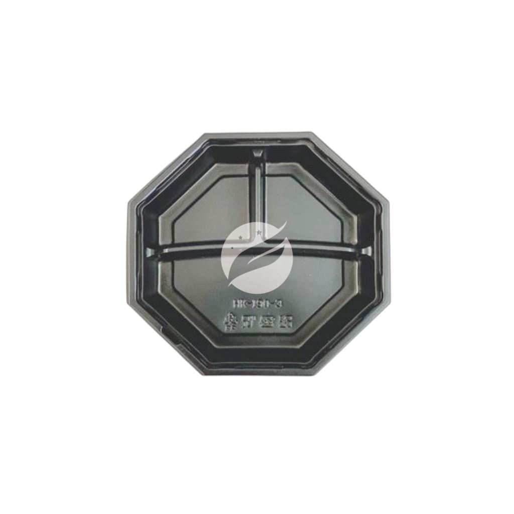 【190-3正八角三格餐盒+透明蓋】HK190-3 PP黑色底盒 OPS透明蓋 300組