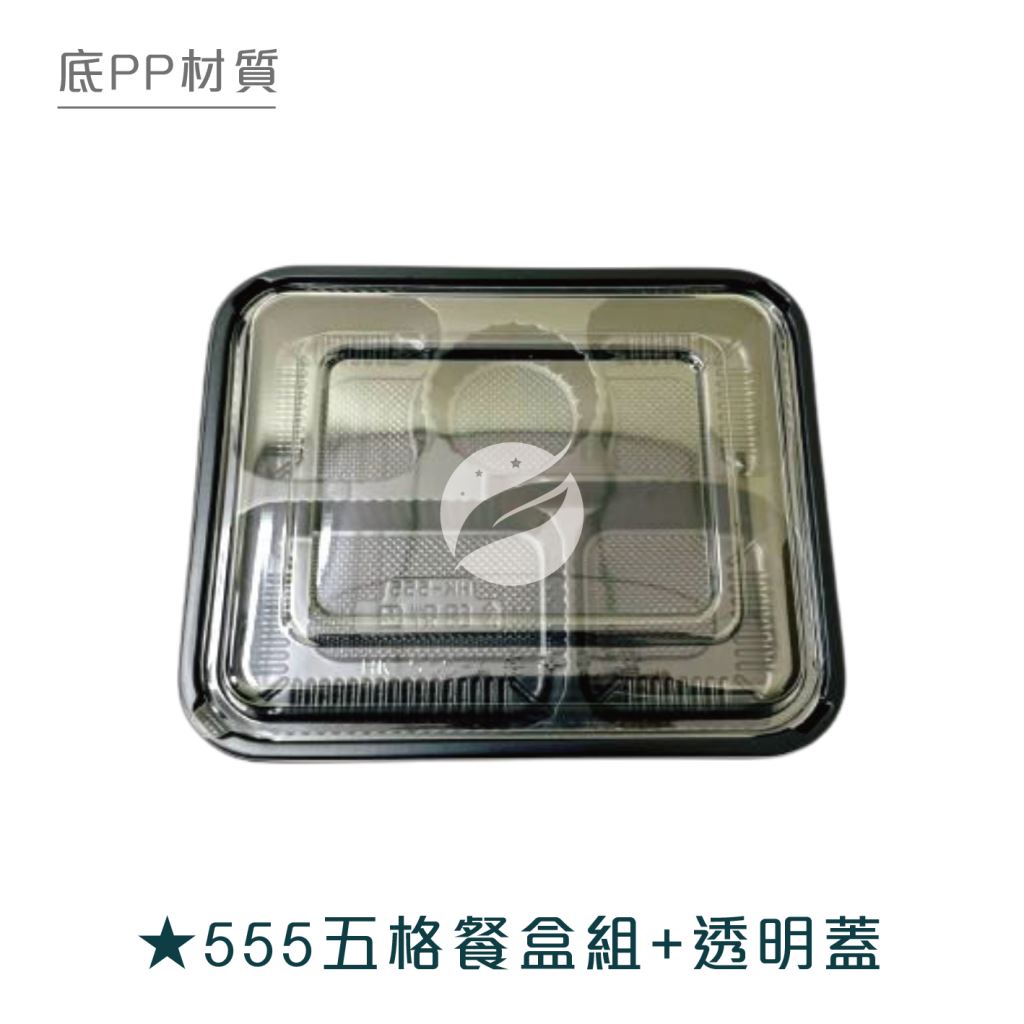 【555五格餐盒組+透明蓋】HK555 PP黑色底盒 OPS透明蓋 300組