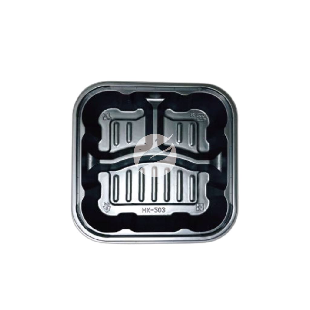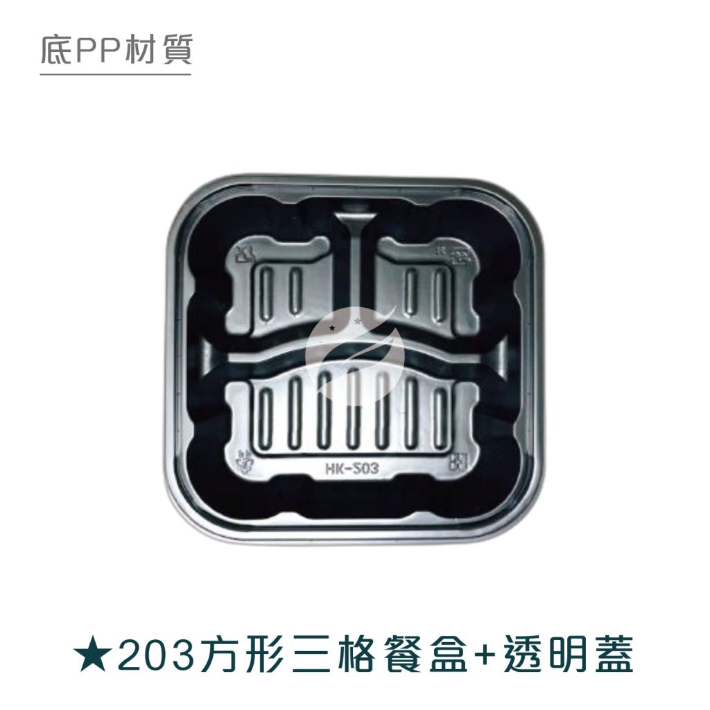 【203方形三格餐盒+透明蓋】HK203 PP黑色底盒 OPS透明蓋 300組