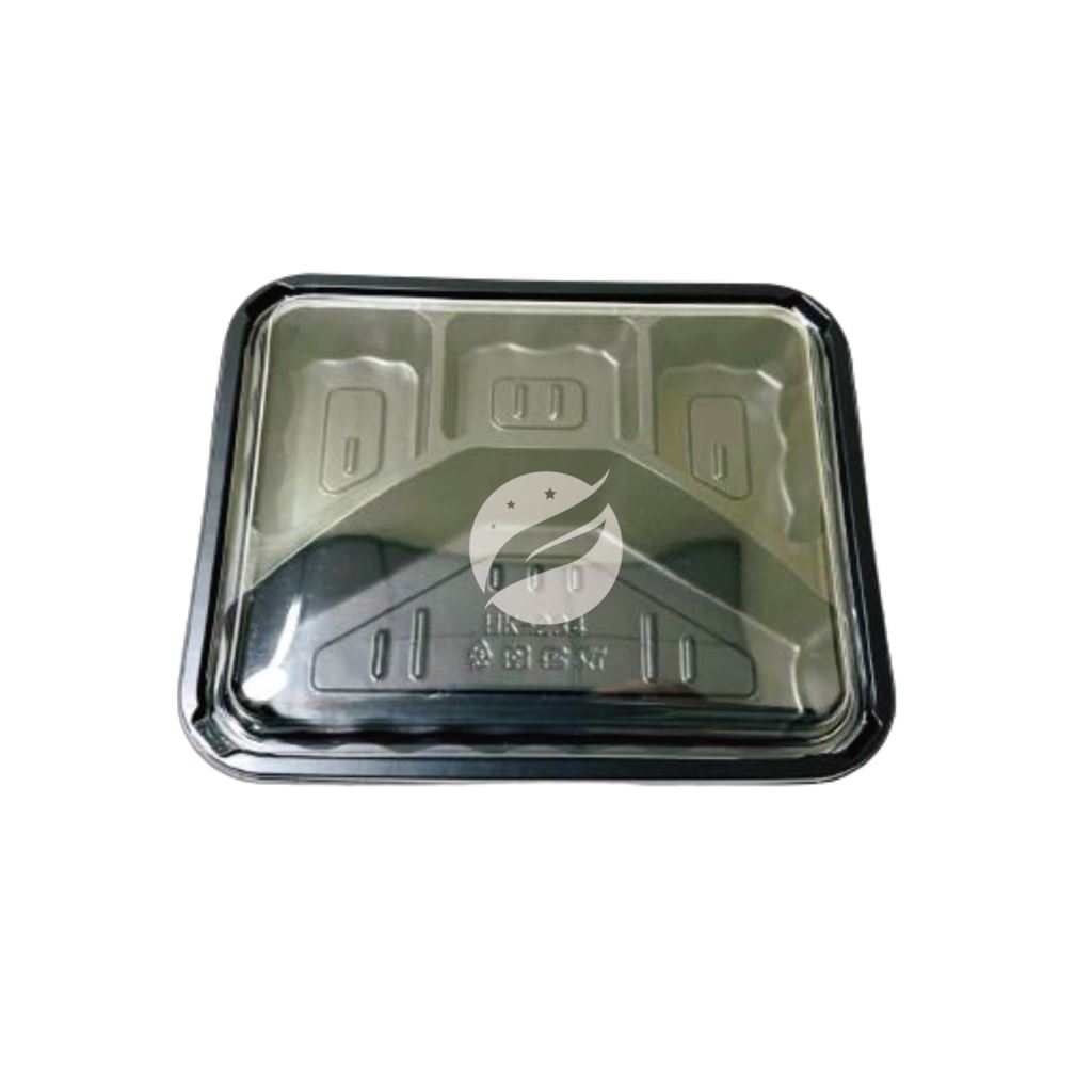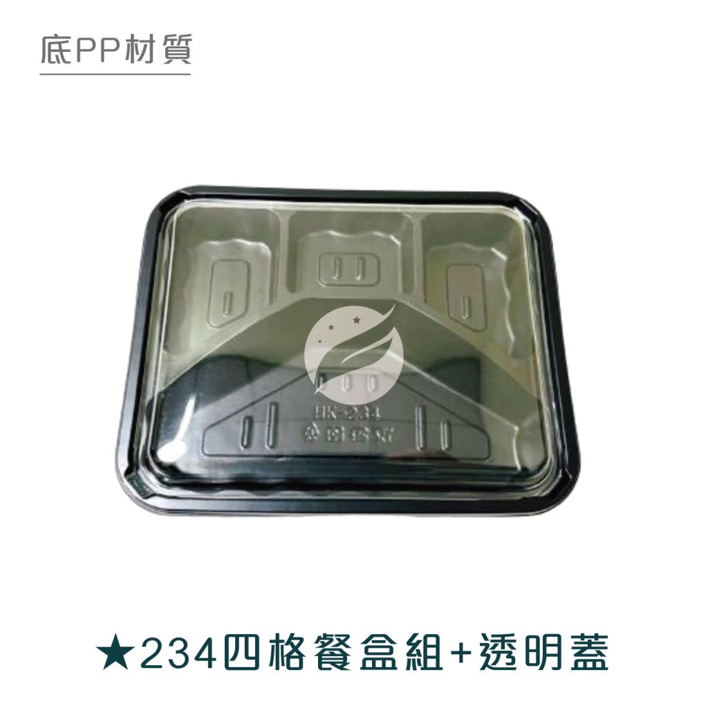 【234四格餐盒組+透明蓋】HK234 PP黑色底盒 OPS透明蓋 300組