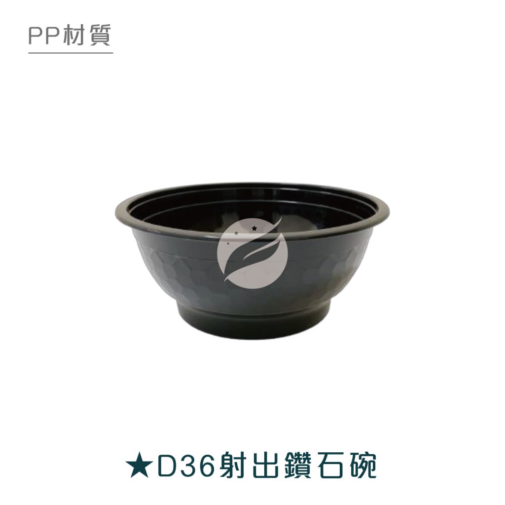 【D36射出鑽石碗】PP黑色圓形餐盒 300個/箱