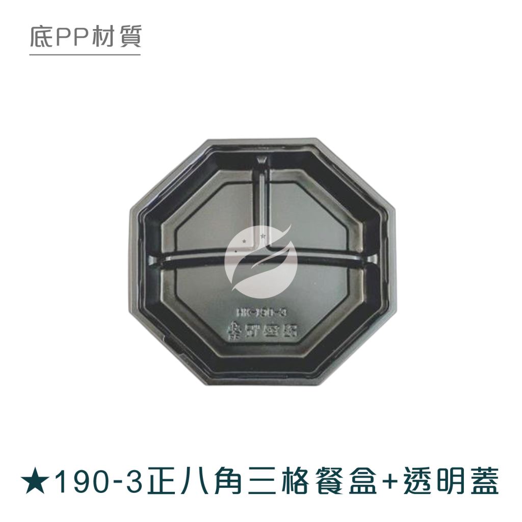 【190-3正八角三格餐盒+透明蓋】HK190-3 PP黑色底盒 OPS透明蓋 300組
