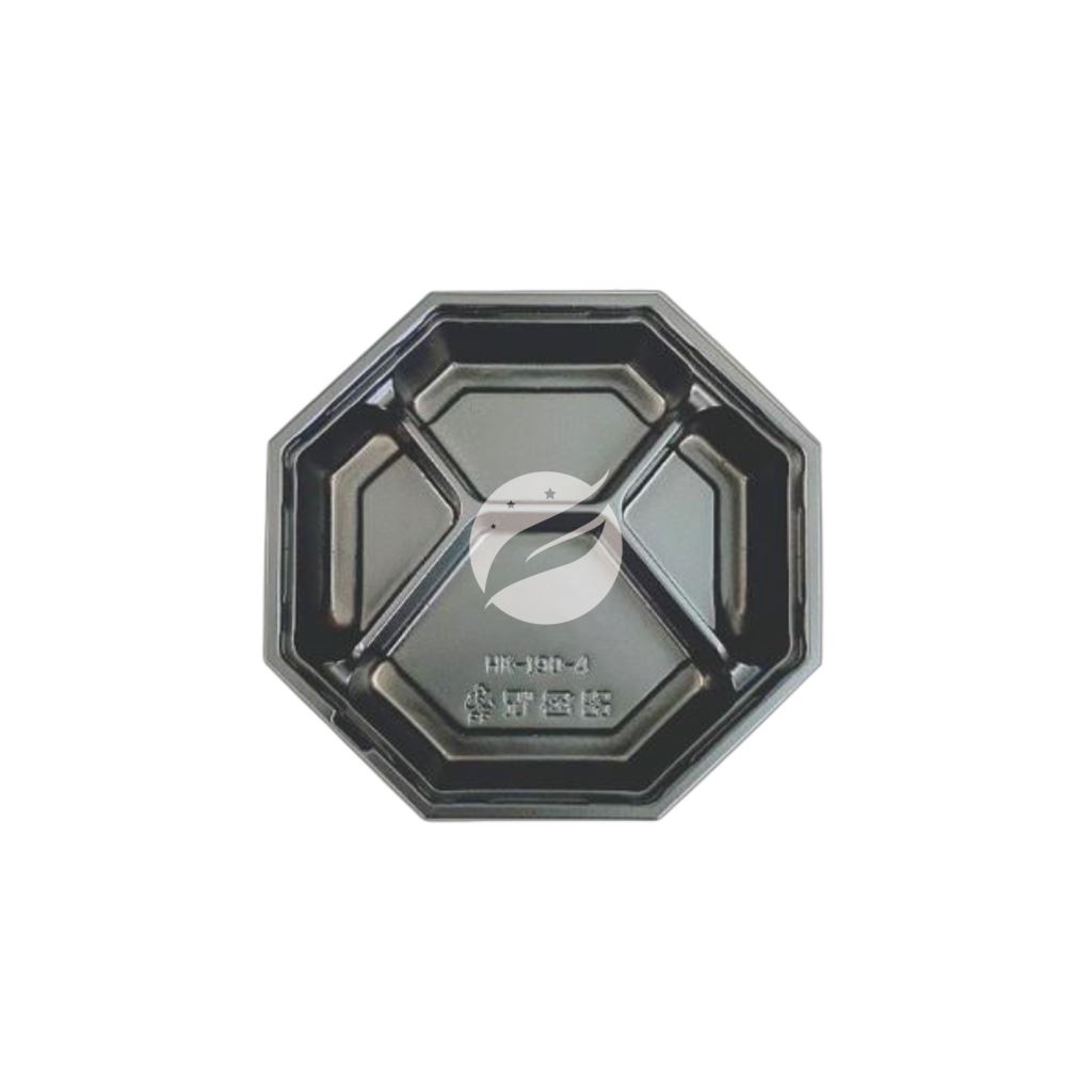 【190-4正八角四格餐盒+透明蓋】HK190-4 PP黑色底盒 OPS透明蓋 300組